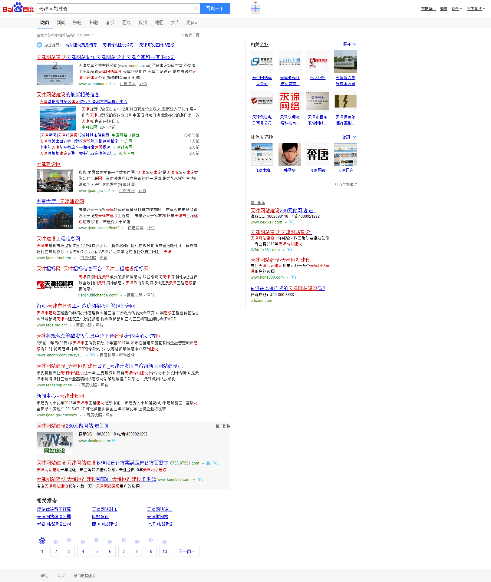 天津網(wǎng)站建設(shè)-文率科技對(duì)網(wǎng)站關(guān)鍵詞的分布就非常的合理,我們有些關(guān)鍵詞采用的就是以上的方式,如:你在百度上搜天津網(wǎng)站建設(shè)時(shí),文率科技一直都穩(wěn)居首頁(yè)。