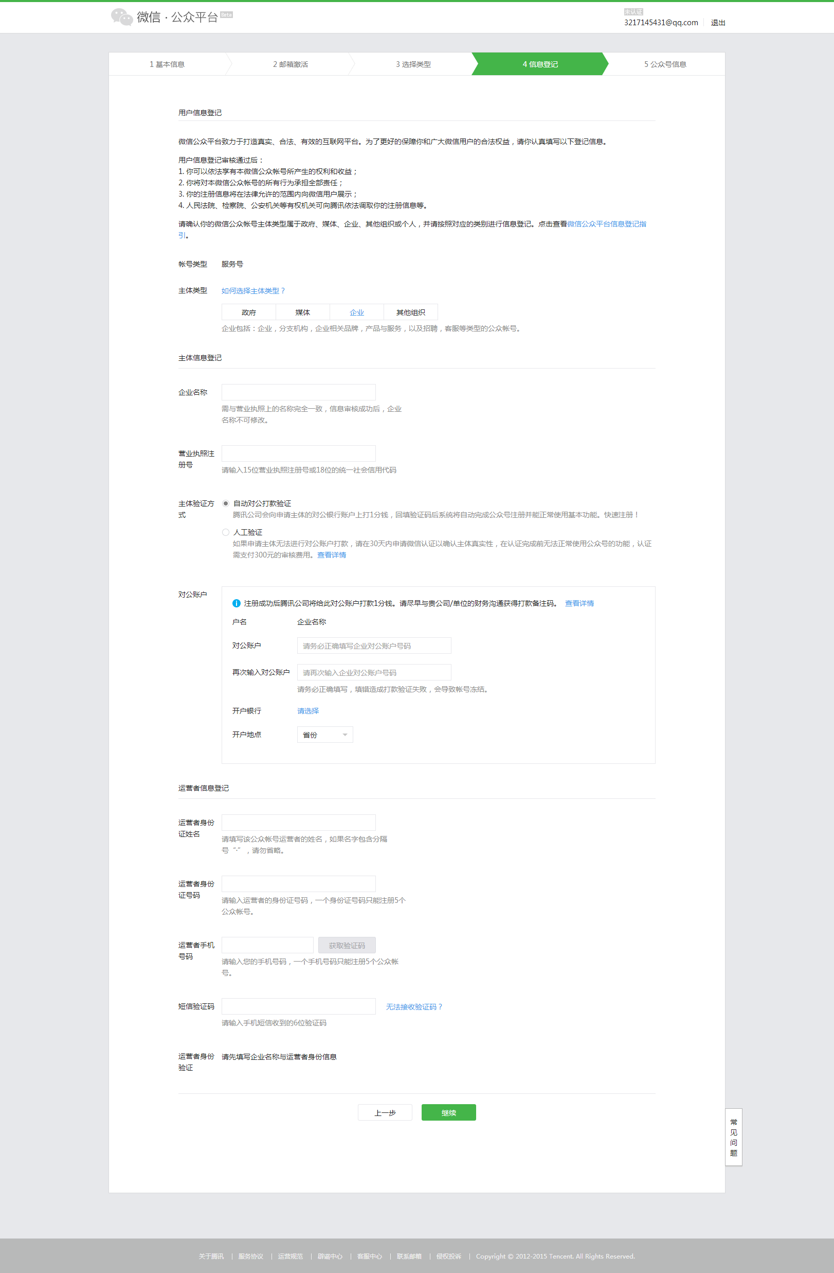 在注冊之前有些資料是必備的,企業的營業執照注冊號,企業的名稱,企業運營地址,對公賬戶,運營者手機好,運營者姓名。