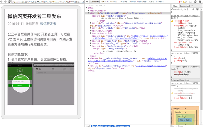 為此,微信 web 開發者工具同步推出0.5.0版本,繼支持測試號、企業號、第三方平臺開發者的使用之后,新增支持實時映射手機屏幕到 PC 或者 Mac 上,可以遠程調試 X5 Blink 內核上的網頁。