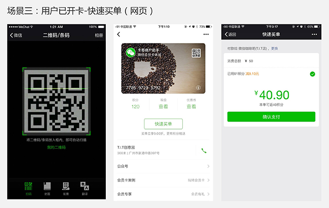 2.調起微信支付:商家可配置在卡內調起微信支付,目前已支持調起網頁支付,在即將發布的新版本里,將支持調起刷卡支付,實現消費閉環。