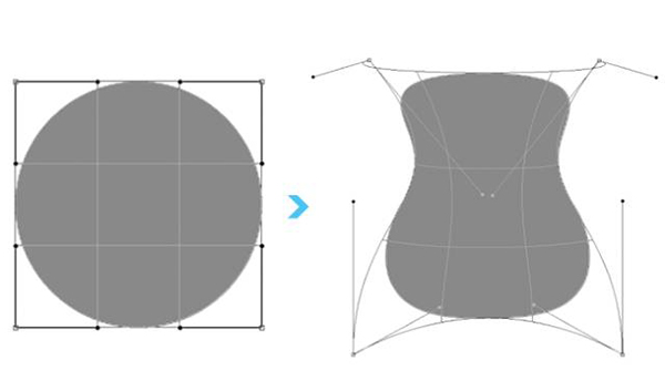 用操控變形轉換一個圖片的時候,只需要點擊編輯>操縱變形,圖片就會被很多線分成一小塊一小塊的。在每條線的連接點你都可以放置一個圖釘,在一個圖片中,你至少需要兩枚圖釘。可動的圖釘為外黃里黑,不動的僅有黃色。使用操縱變形,你可以對圖片進行部分移動,方法:在不需要移動的位置放置圖釘,拉動你想要變換的區域即可。