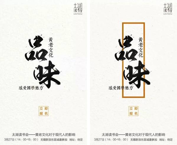 突出主題方式方式多種多樣,不僅只有留白、對比,線條同樣能起到突出主體的作用,如下圖:通過對比觀察我們發現,右側海報整體感更強,主題文案信息更加清晰,主體更明確;其中的原理可以理解為:因為線條的存在,使得主題信息有了一定的范圍,在視覺上等于是在海報中劃定了視覺焦點,從而起到了突出主題的作用;當然還有其他的表現形式。