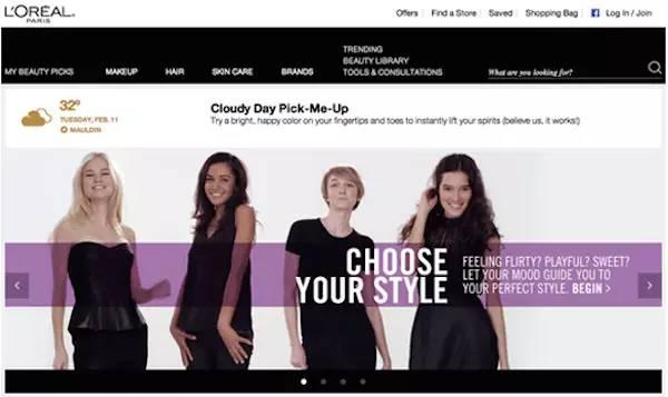 3、紫色體現了紅色般跳躍與藍色般平和之間的平衡。由于它的神秘氣息和貴族氣質,紫色通常會受到那些創意人士或古怪人群的偏愛,同時它也是少女們最愛的顏色。如果你是給女性設計的,那么紫色是一個不錯的選擇,因為一般來說它是普遍女性喜歡的顏色,但是一般情況下,男性是不喜歡的紫色的。如:下圖巴黎歐萊雅網站頁面來說一個很好的效果