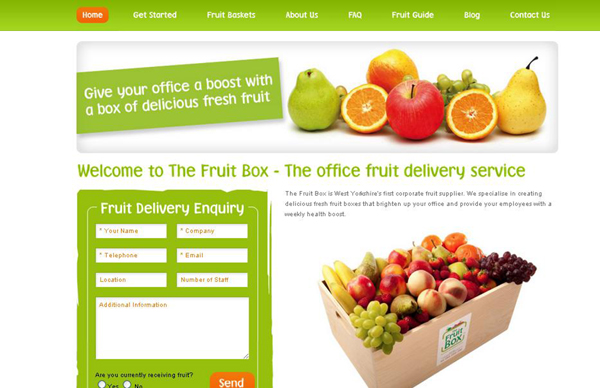 5、綠色是屬于大自然的顏色,相信很多人心里都是這樣想的。網站設計中使用綠色給人以舒適愉悅的感覺,同時還可以增進創意。綠色效應實驗中,綠色顯著的增進受試者的創造力,效果超過其他顏色。綠色的網站設計在一些以無公害蔬菜、水果、或以愛護自然為主題的網站中比較的常見。如:The Fruit Box網站設計。