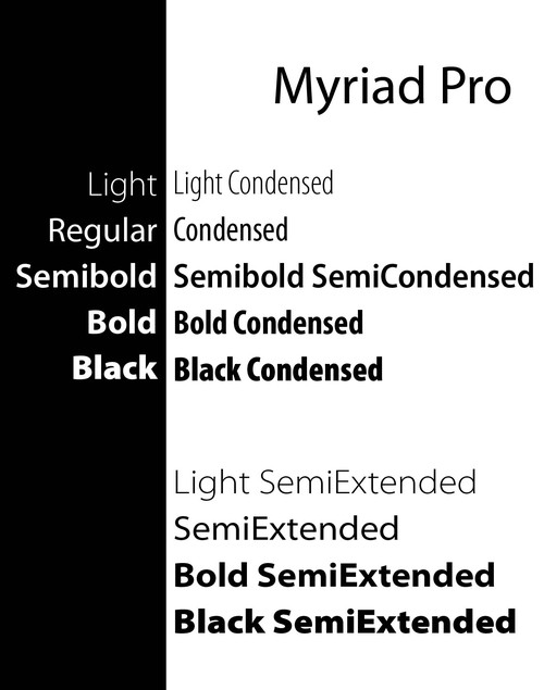 五、比例:比例變化會(huì)使家族里出現(xiàn)“瘦”和“胖”的變異,這是對(duì)字形橫向或縱向比例的收縮變化,在西文的傳統(tǒng)系統(tǒng)命名中通常會(huì)用Condensed(橫向壓縮)和Extended(橫向拉伸)來(lái)區(qū)分長(zhǎng)和寬兩個(gè)類別,這兩種變化可以比較好的處理當(dāng)空間收到局限時(shí)字體的應(yīng)用,而不會(huì)讓字體出現(xiàn)因?yàn)檫M(jìn)行直接的縮放所而導(dǎo)致的風(fēng)格變形。