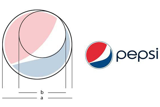 黃金比例圓形。黃金比例不止是能夠創建矩形,同樣的也能用來創建比例協調的圓形。使用黃金比例不僅可以產生和諧的比例,而且能夠讓圖形保持較高的一致性。如:百事的LOGO使用兩個遵循黃金比例的圓圈來構建的,較小圓形并不是顯而易見的那種,而是隱藏在內部的曲線中。