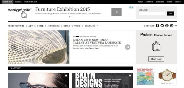 Design Milk網(wǎng)站是屬于一個致力于現(xiàn)代藝術(shù)設(shè)計的網(wǎng)站,由Jaime Derringer成立。Design Milk有很多精美的作品曾被刊登在洛杉磯時報、紐約時代等平面媒體上,同時也是Google Reader的熱門訂閱設(shè)計類網(wǎng)站,以及Twiitter上最受關(guān)注的設(shè)計和藝術(shù)類網(wǎng)站。此外,Design Milk還被不少書籍選為精選網(wǎng)站,以及被眾多工程師、零售商、雜志編輯和設(shè)計師收藏。