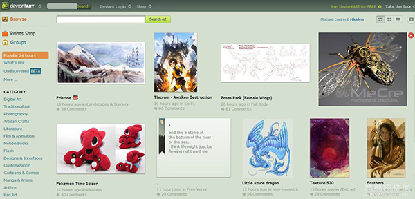 Deviant Art是屬于一個社區(qū)網(wǎng)站,你可以在里面找到數(shù)碼設(shè)計、皮膚、主題、壁紙等圖片,還有傳統(tǒng)藝術(shù)、攝影、詩歌、散文以及藝術(shù)圖案等精美的設(shè)計案例,有利于幫助你很好的尋找靈感,設(shè)計出更多的精美的作品。