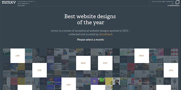 當進入網站后界面以后,你會發現MMXV網站中并不存在多余的介紹和花里胡俏的裝飾,有一行關于網站主人zitrusfrisch 的介紹,他是一個國外服務類產品中非常有威望的設計師,榜單的收集和網站的視覺設計都是由他一人完成的,非常良心。