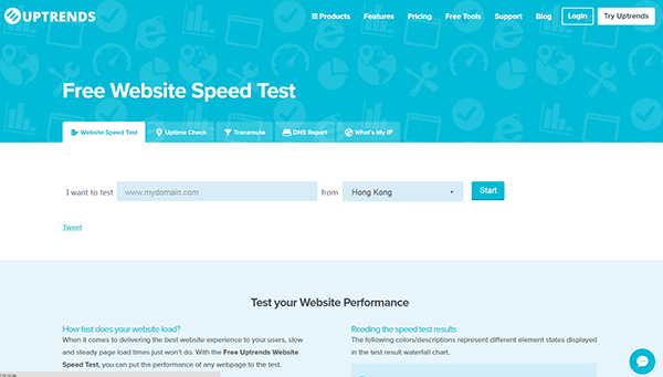 Uptrends是一個非常基本的服務,但提供超過35個國家節點讓你選擇并執行網站速度測試工具。他們的報表分為兩部分,一個瀑布圖及域名群組。域名群組提供一個獨特的視角,因為它把資源歸類到不同來源:⑴方、統計、CDN、社交網站、廣告及第三方。