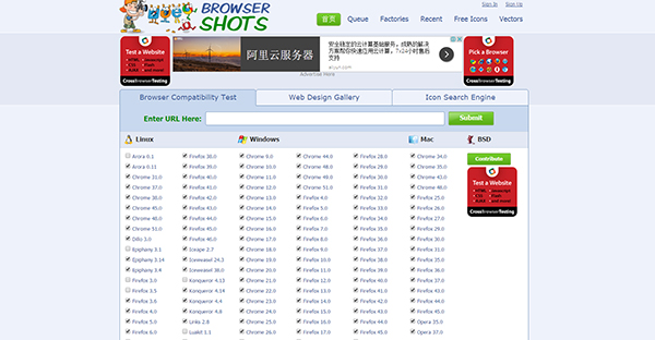Browsershots可檢查網站的跨瀏覽器兼容性。它是一個開源的在線web應用程序,能夠提供你的網站在不同瀏覽器和操作系統中的截圖畫面。