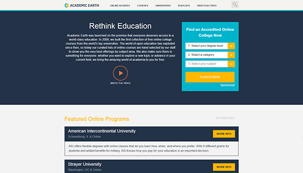 Academic Earth堅信每個人都應該獲得世界一流的教育,或者這也是該網(wǎng)站一直不斷提供一系列免費的在線的課程的原因,這些課程均來自世界頂尖的大學。現(xiàn)在,我們可以在課堂之外學習原汁原味、富有啟迪的視頻,這些視頻能夠激發(fā)你的創(chuàng)造力并且讓你想與他人交流討論。觀看、學習、分享、思辨。