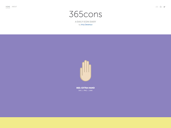 365cons不知道作為設計師的你是否了解對其有過了解,它是Amy Devereux所制作的每日更新的“圖標日記”,這些圖標被設計成不同的樣式,對于設計師尋找靈感來說是相當不錯的選擇,如果現在的你也在迷茫,不知所措的話,不妨多瀏覽些這樣的網站,用其作為靈感來源還是相當不錯的哦!