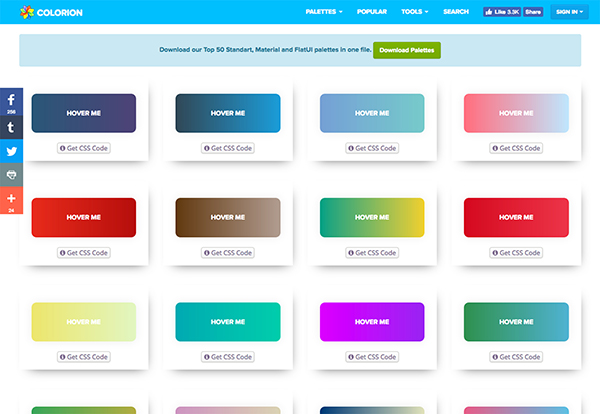 很多的時候,設計師在設計一款app或者是商城類網站時,經常為按鈕發愁,GRADIENT BUTTONS的出現很好的幫助用戶解決按鈕的問題,如果你已經厭倦了扁平風按鈕,那么相信Colorion 的漸變按鈕一定能夠吸引到你,這些按鈕包含了單色和多色等多種不同的類型,提供CSS樣式,一鍵啟用,并且你甚至可以通過搜索找到匹配你的配色方案的按鈕。