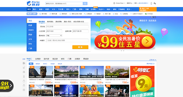 藍(lán)色無(wú)形之中給予了人們一種安全感,這也是為什么很多的旅游行業(yè)的app和網(wǎng)站采用藍(lán)色作為UI設(shè)計(jì)的主要原因,它隱隱傳遞出可靠,信任的感覺(jué),而這無(wú)疑也是旅游類應(yīng)用和網(wǎng)站的最佳選擇,如目前深的大眾親睞的攜程旅游網(wǎng),它的logo以及網(wǎng)站整體的主色調(diào)采用的都是藍(lán)色的設(shè)計(jì)。