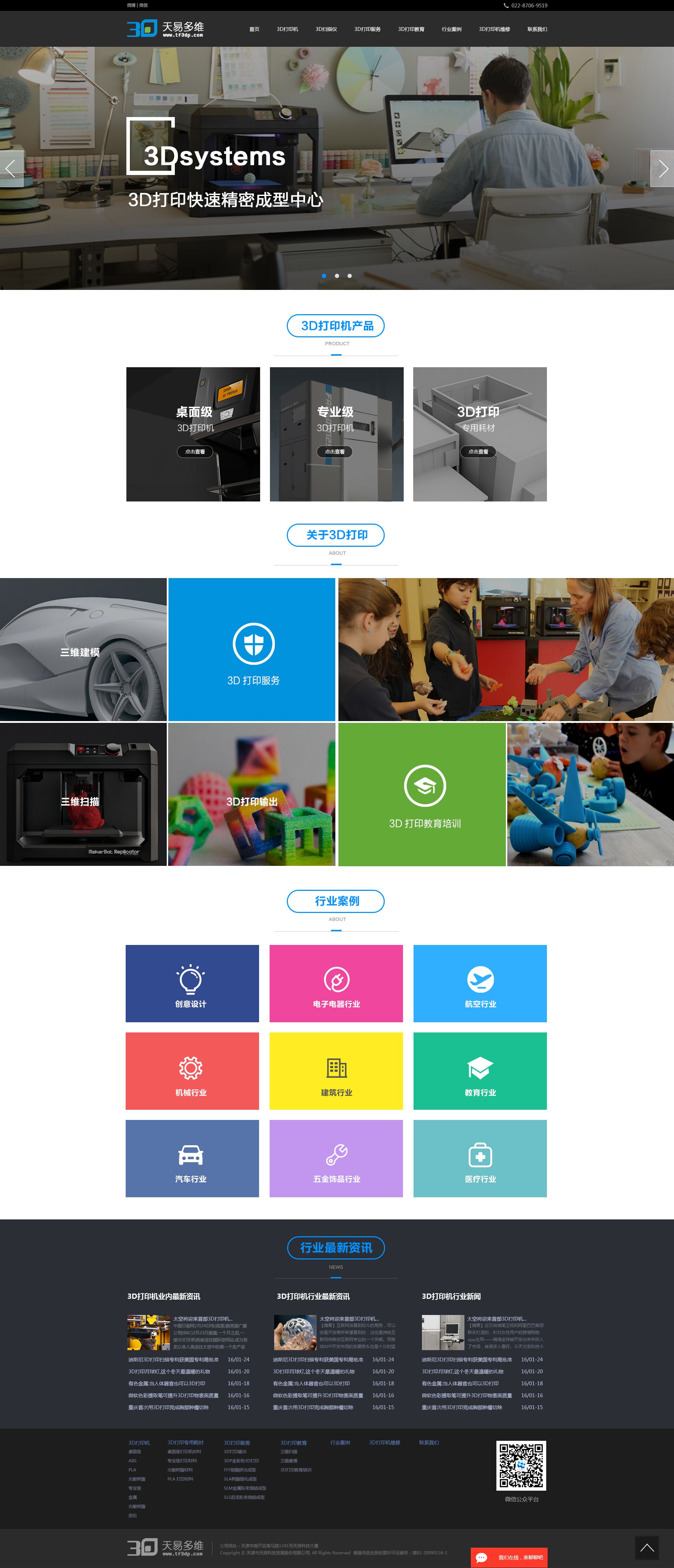 天津天易多維科技有限公司成立于2015年初,是注冊于濱海高新區的高科技企業,公司以天津濱海高新區為依托,瞄準科技前沿,緊跟時代步伐,著眼于近年異軍突起的3D打印行業,引進世界上最先進的3D打印設備制造商品牌3Dsystems,率先在國內建立3D打印快速精密成型中心。